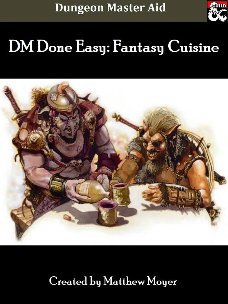 The guide provides DMs with an easy way to add world-building depth to their campaign – through food! An assortment of meals and beverages have been provided for each of the races found in the 5e Player’s Handbook, each with a unique cultural spin. Each of the items contained within is briefly described. Also included are FULL RULES ON DRINKING AND INEBRIATION!